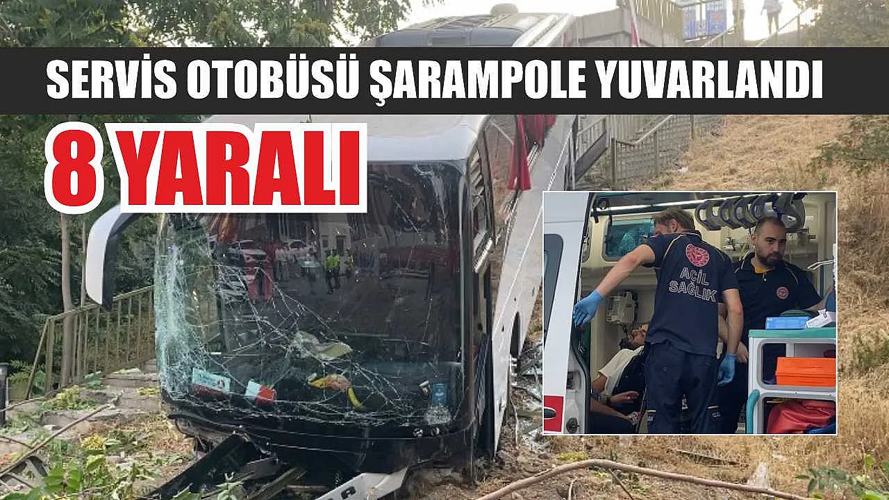İşçi taşıyan servis otobüsü, şoförün fenalaşması sonucu şarampole yuvarlandı. Kazada şoför dahil 8 kişi yaralandı, olayla ilgili polis soruşturma başlattı.
