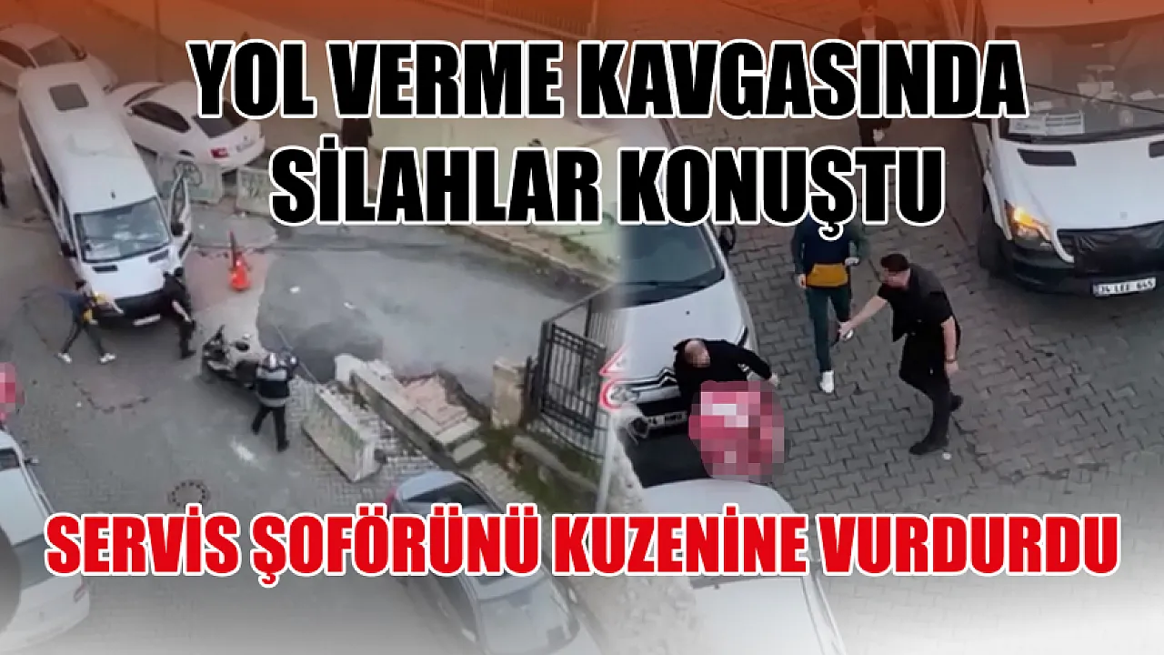 Servis şoförü ile araç sürücüsü arasında yol verme nedeniyle kavga çıktı. Sürücünün haber vermesi üzerine olay yerine gelen kuzeni, servis şoförünü silahla vurdu. Kağıthane Asayiş Büro Amirliği ekipleri tarafından yakalanan Ramazan S. tutuklandı. O anlar ise cep telefonu kamerasına yansıdı.