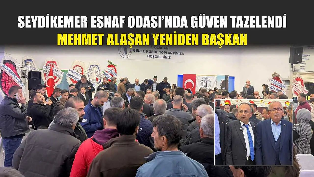 Seydikemer Esnaf ve Sanatkârlar Odası 3. Olağan Genel Kurulu'nun ardından mevcut başkan Mehmet Alaşan, 786 oy alarak yeniden başkanlığa seçildi. Alaşan, 'Kazanan bir ekip değil, Seydikemer esnafıdır' dedi.