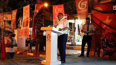 Programda Başkan Otgöz konuşmasını şöyle sürdürdü: “ Hain darbe girişiminin üzerinden 4 yıl geçti. Bu milletin ne kadar birlik ve beraberlik içinde olduğunu yine bu meydanlarda görüyoruz. Fetö terör örgütü ilk önce işe Marmaris’ten başladı. Çünkü Cumhurbaşkanımız oradaydı. Onu orada ele geçirmek için bütün planlarını yaptılar ancak Cenab-ı Allah buna izin vermedi. Cumhurbaşkanımız halkımızı meydanlara, sokaklara davet ettikten sonra helikopterle Dalaman Havaalanı’na geldi. Geldikten sonra Fetö terör örgütü orada, sahnede. 11 dakika uçağı bekletiyorlar. Ama 11 dakikadan sonra Cumhurbaşkanımız, ‘biz buradan gidelim’ diyor. Allah’a şükür pilotumuz, Cumhurbaşkanımız ailesini, torunlarını, bakanımızı sağ salim İstanbul Havaalanı’na ulaştırıyor. Fetö orada vatandaşımızın dimdik ayakta durması sayesinde, polisimizin de püskürtmesiyle Cumhurbaşkanımızın uçağı iniyor. Bu topraklarda bütün dünyanın gözü var. Şer güçlerin gözü var, hepsi farklı. Darbe püskürtüldükten sonra güneş doğduktan sonra iki-üç gün onlar hiç açıklama yapmadılar zaten. Biz Çanakkale’de, Dumlupınar’da genç yaşlı bu topraklar için mücadele ettiysek, zor günlerde bu düşmanların üstesinden geldiysek bunda da geldik. Bu sefer düşman bizim dışımızda değildi, düşman belliydi, içimizdeydi. Devletin kendi vergisiyle toplanmış olan paralarla, tankımızla, uçağımızla, helikopterimizle, tüfeğimizle sivil vatandaşlarımızın üstüne saldırdılar. Ankara’da, İstanbul’da bombalamadıkları yer kalmadı desem olur. 251 şehit verdik. Allah hepsinden razı olsun, mekanları cennet olsun. Cenab-ı Allah bize bir daha böyle bir darbe göstermesin. Kendi içimde hep şüphelerim vardı; acaba gençlik nasıl geliyor diye. Allah’a şükürler olsun gençlik dimdik arkasında, sağlam geliyor. Bu darbe girişimi başarılı olsaydı PKK da girecek, bu ülke darmadağın olacaktı. Birlik beraberliğimizi bütün dünya gördü. Bu millet artık uyandı. Eskiden darbeler oluyordu, kimsenin haberi olmuyordu. Bu darbe girişiminde millet yine evlerine kapanacak sandılar ama millet ölümü göze aldı. 1071’den bu yana geldiysek bundan sonra da biz bu coğrafyada var olacağız. Yeter ki bir olalım, birlik olalım. Hep birlikte Türkiye olalım. Tüm şehitlerimizi rahmet ve minnetle anıyorum, gazilerimize sağlıklar diliyorum”