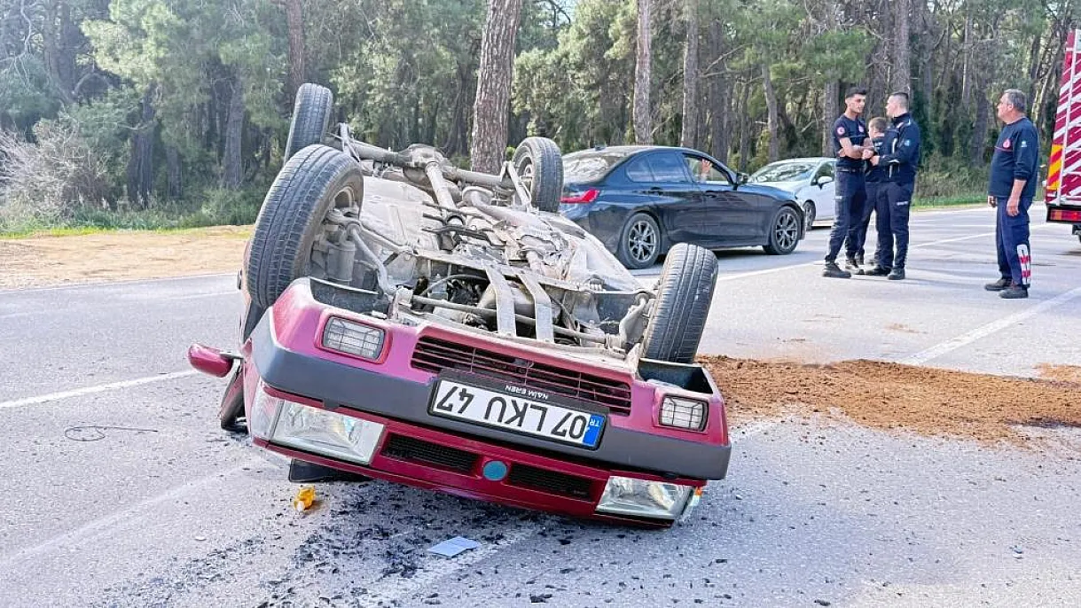 Antalya'nın Manavgat ilçesinde devrilerek ters dönen otomobilin sürücüsü ve yolcu olarak bulunan 1 kişi kazayı şans eseri yaralanmadan atlattı.