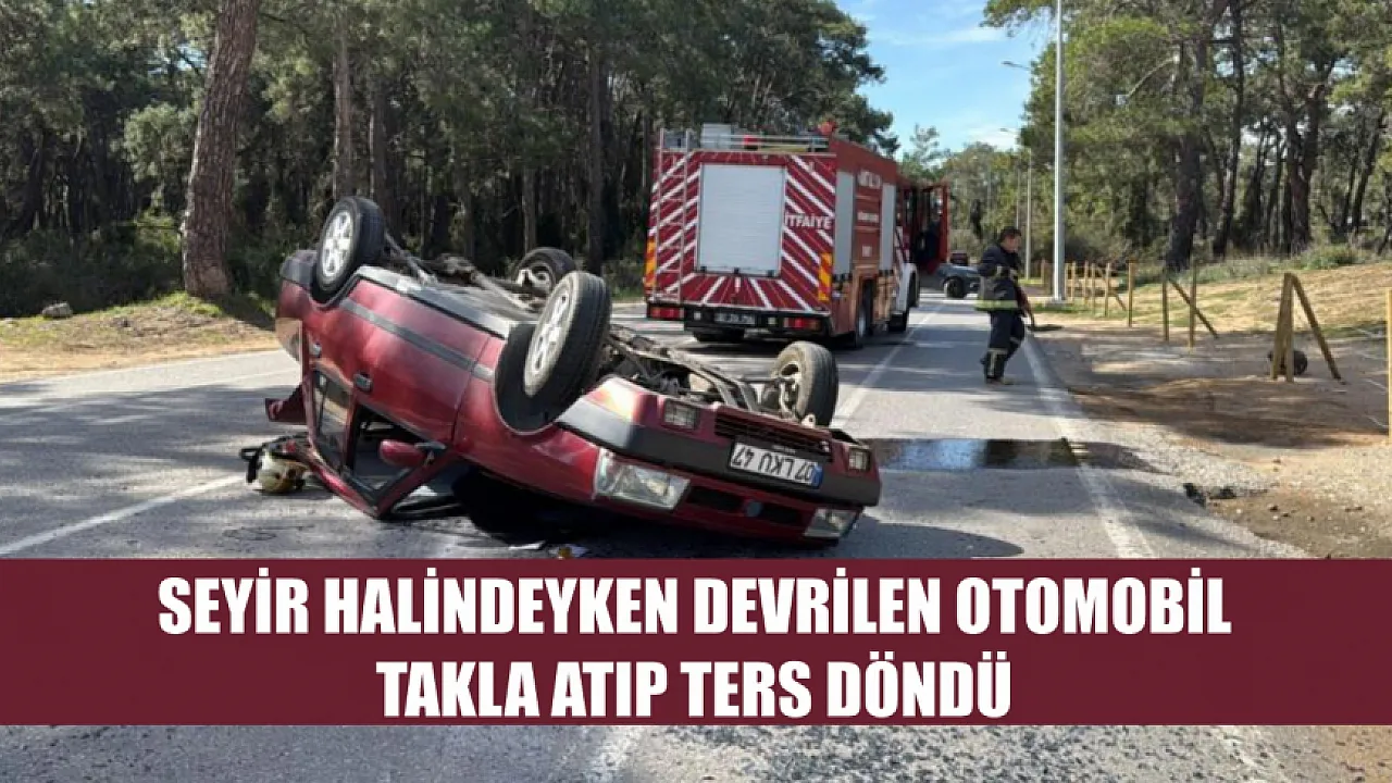 Seyir halindeyken devrilen otomobil takla atıp ters döndü