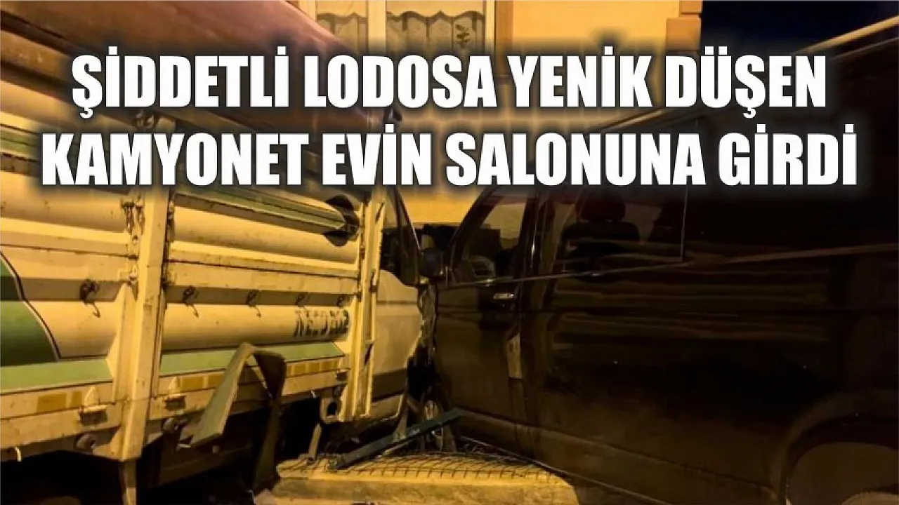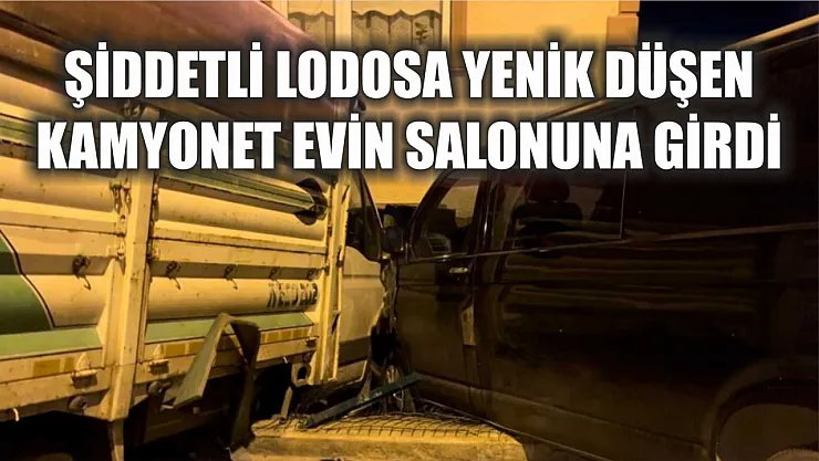 Şiddetli lodosa yenik düşen kamyonet, park halindeki otomobile çarptıktan sonra giriş katındaki dairenin salonuna girdi. Trajikomik kazada yaralanan olmazken, araçlarda ve evde maddi hasar oluştu.