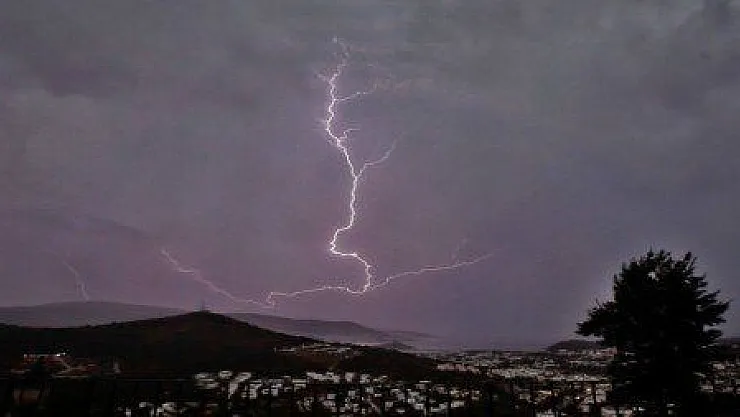 Yağışlar hayatı olumsuz etkilerken,şimşeklerin seyri izleyenleri büyüledi