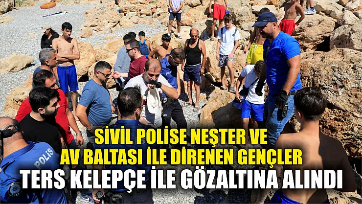 Antalya'da bir şahsın cep telefonunu aldıkları ve karşılığında para talep ettikleri iddia edilen 5 genç, ihbar üzerine olay yerine gelen sivil polis ekiplerine de neşter ve av baltası ile mukavemet gösterince ters kelepçe ile gözaltına alındı.