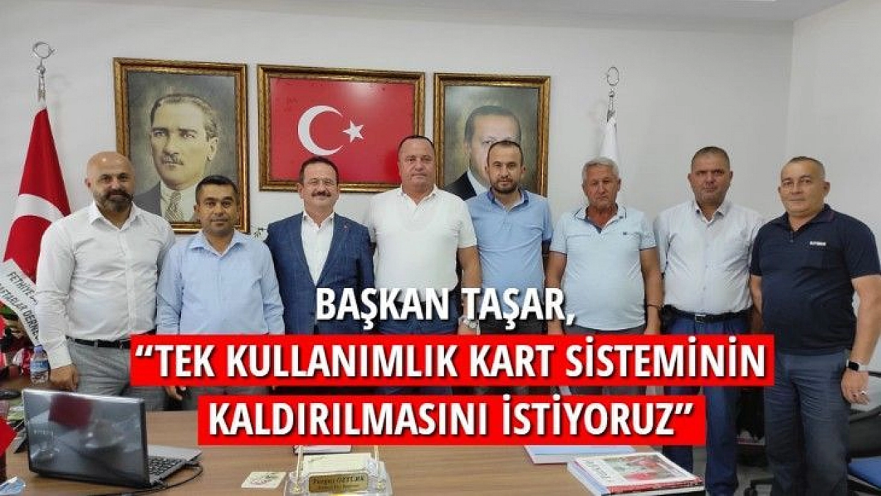 Fethiye Şoförler ve Otomobilciler Odası Başkanı Şaban Taşar ve dolmuş kooperatif başkanları ile birlikte AK Parti Fethiye İlçe Başkanı Turgay Öztürk’e ziyarette bulunarak, sektörün sorunlarını ilettiler. Özellikle Muğla Büyükşehir Belediyesine bağlı Ulaşım Koordinasyon Merkezi Müdürlüğünün uyguladığı, toplu taşıma araçlarındaki tek kullanımlık kart uygulamasının kaldırılması ve yerine şoför kart uygulamasının getirilmesi talebinde bulunan başkan Taşar ve beraberindeki kooperatif başkanları ilçedeki trafik ile ilgili sorunların çözümlenmesi konusunda da talepte bulundular.