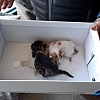 Yeni doğan yavru kediler evin dışında bekleyen annesinin yanına bırakıldı.