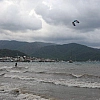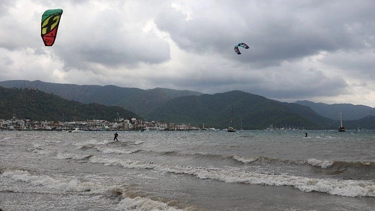 Sıcak havaların birkaç gün öncesine kadar etkili olduğu Marmaris'te artık soğuk ve yağışlı hava kendini hissettirmeye başladı. Bugün sabah saatlerinde başlayan sağanak yağmur ve rüzgar zaman zaman etkisini arttırırken sörfçüler yağmurun ve rüzgarın tadını çıkardı.