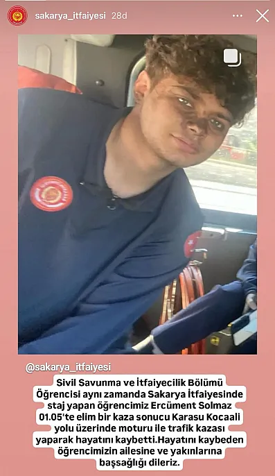 Gece saatlerinde kız arkadaşının yanına gittiği esnada motosikleti ile kaza yapan stajyer itfaiyeci, olay yerinde hayatını kaybetti. Hayatını kaybeden gençten geriye saatler önce yaptığı paylaşımlar ile itfaiye kıyafeti ile çekildiği fotoğraflar kaldı.