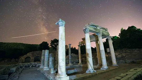 Tüm dünyanın merakla beklediği perseid meteor yağmuru, Milattan önce 3. yüzyılda kurulan Muğla'nın Yatağan ilçesindeki Stratonikeia antik kentinde İhlas Haber Ajansı ekibi tarafından görüntülendi.