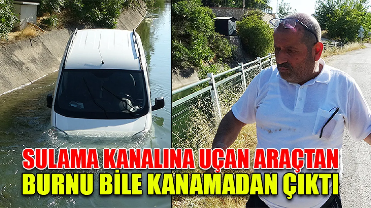 Kontrolden çıkan hafif ticari araç sulama kanalına uçtu. Araç sürücüsü kazadan burnu bile kanamadan kurtuldu.