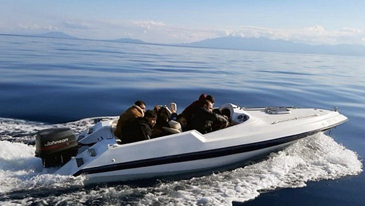 Muğla Bodrum'da sürat teknesi ile gündüz saatlerinde kaçmaya çalışan 10 düzensiz göçmen yakalandı. düzensiz göçmen Sahil Güvenlik ekiplerince yakalandı.
