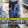 Yolda seyir halinde olan yarış motorunun direksiyonundan bir anda yılan çıktı. Yılanla karşı karşıya kalınca şok yaşayan kadın sürücünün yardımına akaryakıt istasyonu çalışanları yetişti.