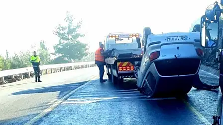 Muğla'nın Menteşe ilçesinde meydana gelen trafik kazasında takla atarak 30 metre sürüklenen araçta bulunan iki kişi şans eseri kazadan yara almadan kurtuldu.