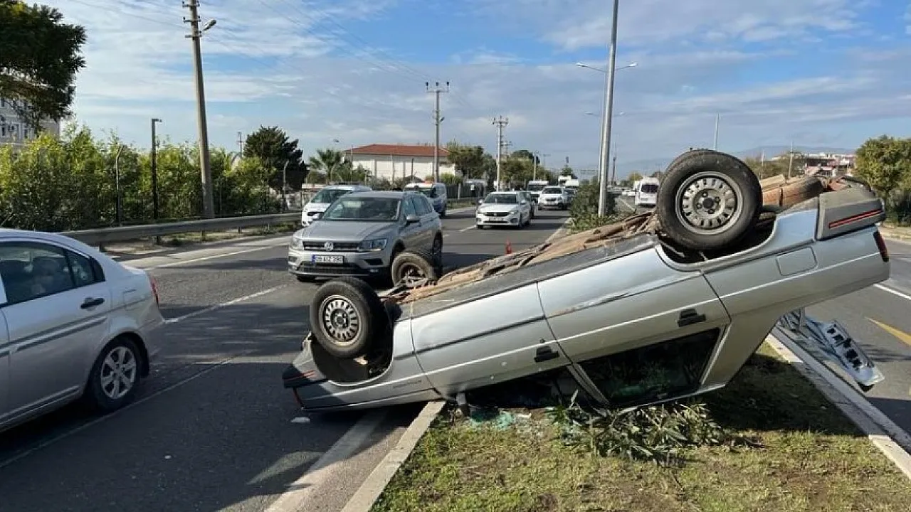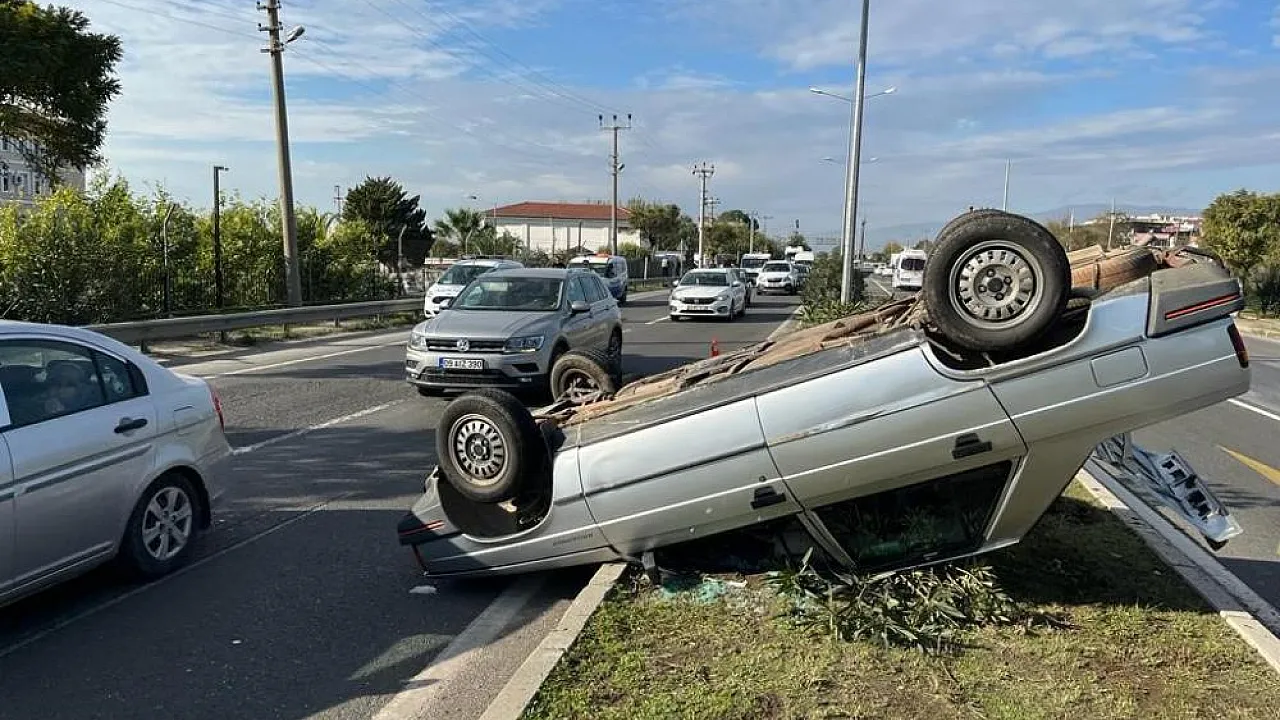 Aydın'ın Nazilli ilçesinde meydana gelen trafik kazasında takla atan otomobildeki iki kişi yaralandı.