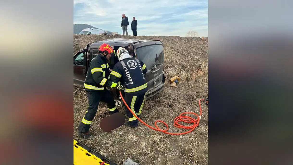 Denizli'de seyir halindeki otomobil, sürücüsünün direksiyon hakimiyetini kaybetmesi sonucu yoldan çıkarak tarlaya uçtu. Kaza sonucunda araçta sıkışan 2 kişi, itfaiye ekipleri tarafından kurtarıldı.