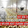 - Tavuk eti üretimi 197 bin 334 ton, tavuk yumurtası üretimi 1,6 milyar adet olarak gerçekleşti