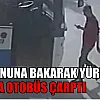 Telefonuna bakarak yürüyen yayaya otobüs çarptı