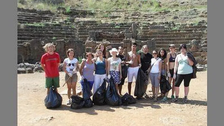 TELMESSOS ANTİK TİYATROSUNU YABANCI UYRUKLU DOĞASEVERLER TEMİZLEDİ