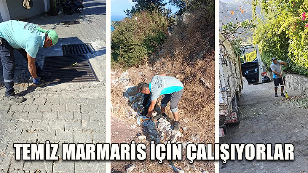 Marmaris Belediyesi'nin temizlik emekçileri caddelerden plajlara, ormanlık alanlardan derelere kadar Marmaris'in her yerinde ter dökmeye devam ediyor.