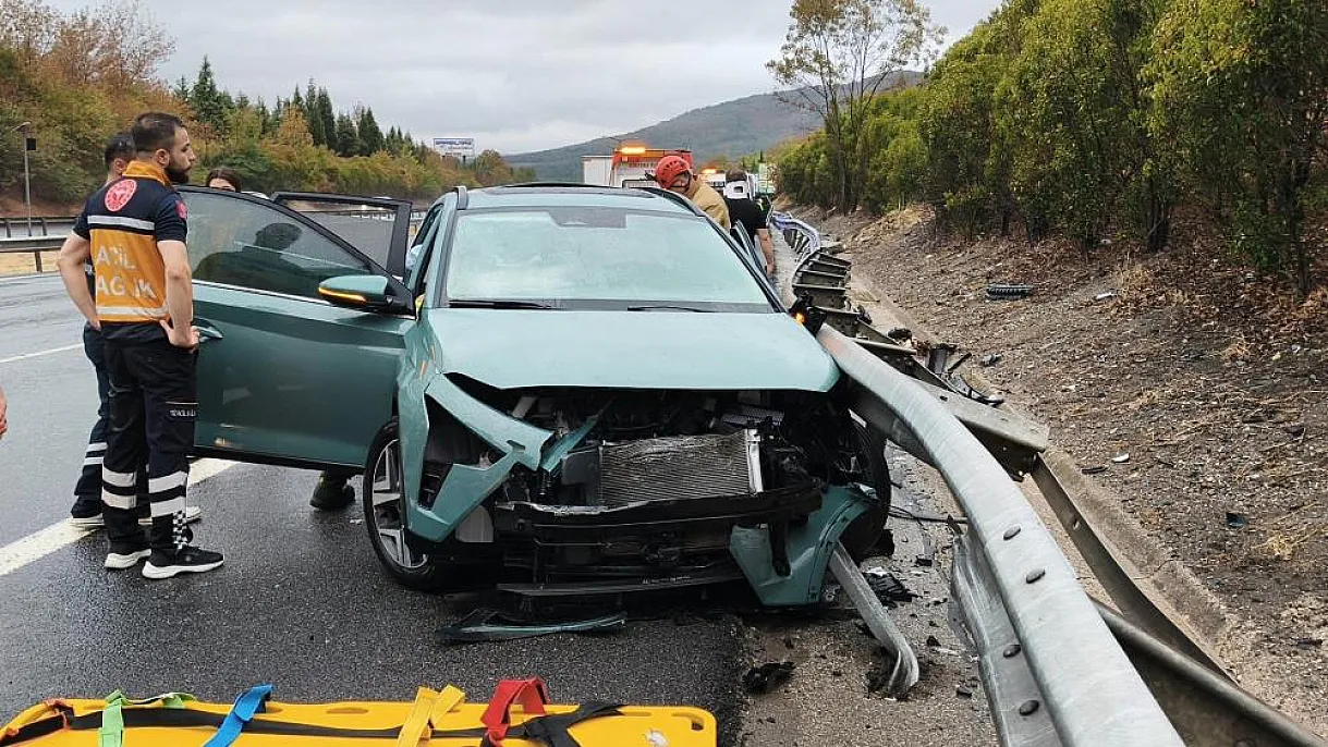 Anadolu otoyolunda meydana gelen trafik kazasında 5 kişi yaralandı. Kazada aracın içinde sıkışan sürücü ise uzun uğraşlar sonrası sıkıştığı yerden çıkarılabildi.