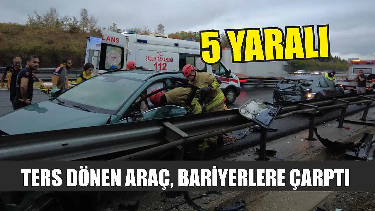 Ters Dönen Araç, Bariyerlere Çarptı: 5 Yaralı!