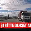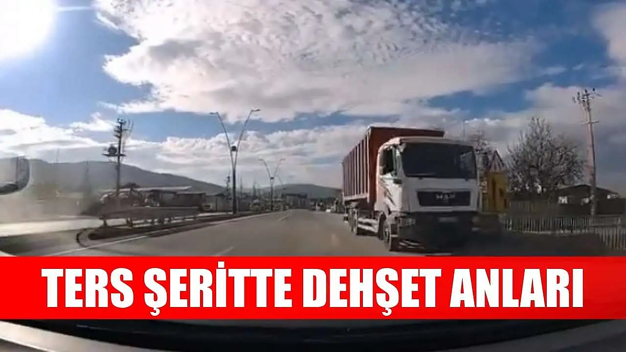 Ters şeritten son sürat ilerleyen bir kamyon, başka bir aracın araç kamerasına saniye saniye yakalandı.