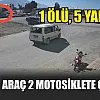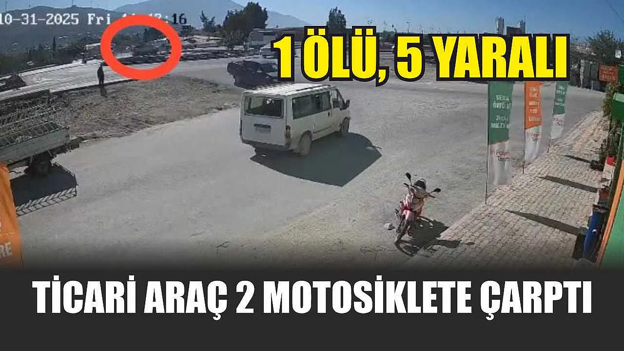 Hafif ticari aracın 2 motosiklete çarpmasıyla yaşanan kazada, 1 kişi ölürken 5 kişi yaralandı. Feci kaza anıysa kameraya yansıdı.