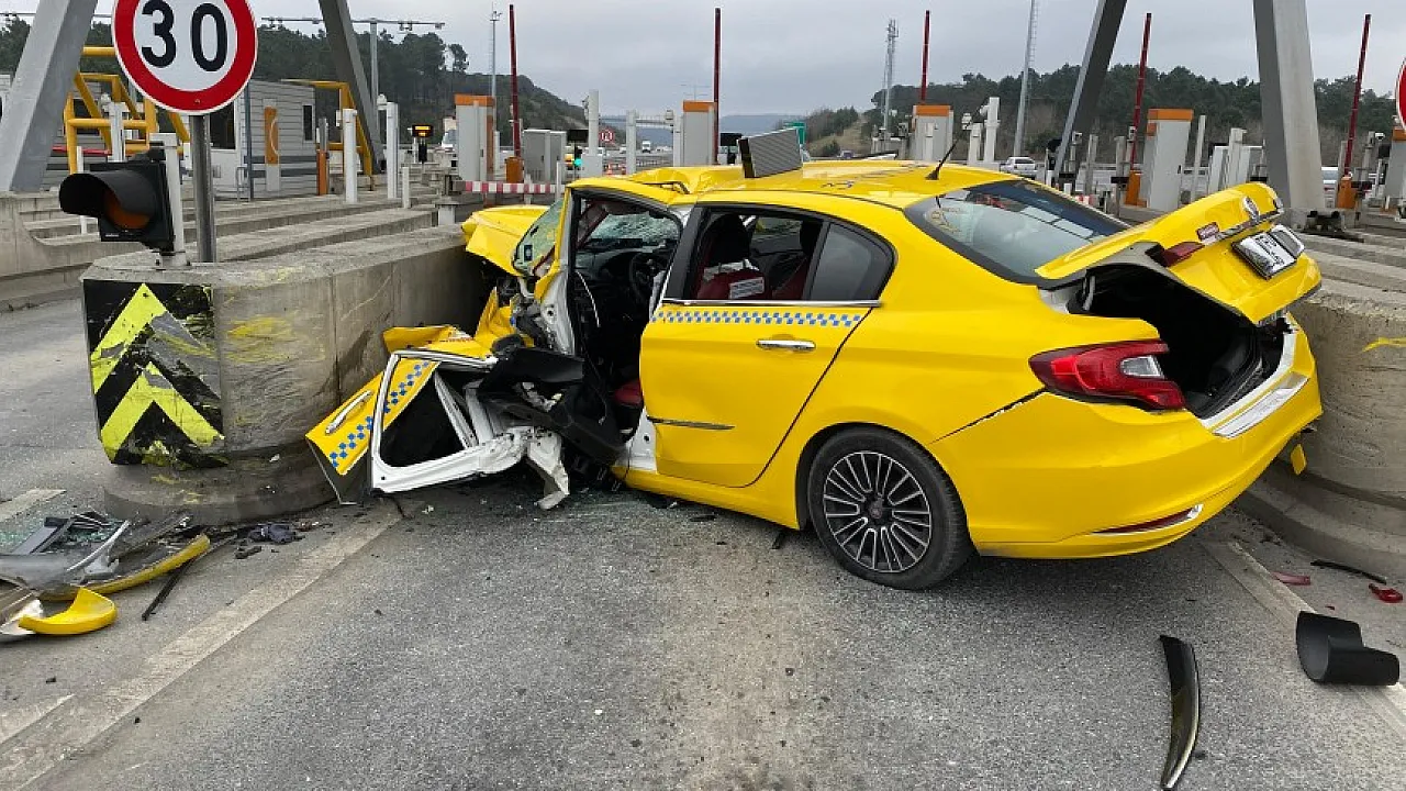Kuzey Marmara Otoyolu'nda bir ticari taksi, gişelerin beton bariyerine çarptı. Kazada araçta bulunan yolcu ve şoför ağır yaralandı.