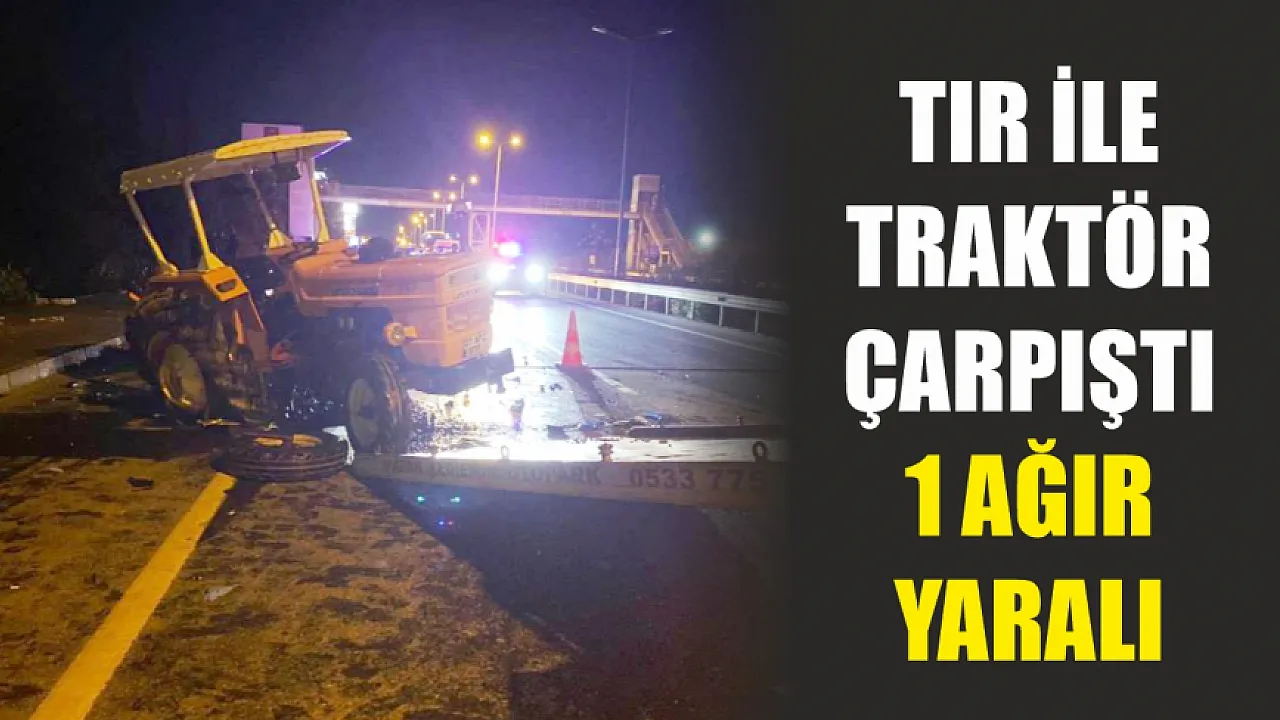 Tır ile aynı istikamette giden traktörün çarpışması sonucu meydana gelen trafik kazasında traktör sürücüsü ağır yaralandı.
