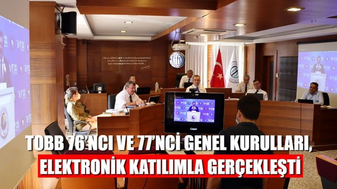Türkiye Odalar ve Borsalar Birliği (TOBB) 76'ncı ve 77'nci Genel Kurulları, elektronik katılımla, çevrimiçi video konferans yöntemiyle gerçekleştirildi. Türkiye genelindeki 365 Oda ve Borsadan üyelerin katılımıyla gerçekleştirilen genel kurula, Fethiye Ticaret ve Sanayi Odası'ndan (FTSO) bağlanan aralarında FTSO Meclis Başkanı Mustafa Büyükteke ve FTSO Yönetim Kurulu Başkanı Osman Çıralı'nın da bulunduğu TOBB Genel Kurul Üyeleri, elektronik katılımla oy kullandı.