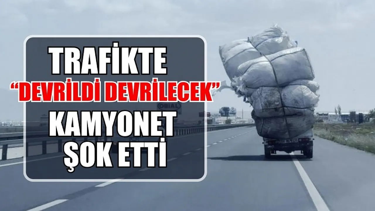 Kamyonete yüklediği aşırı yükle karayolunda seyreden sürücü yürekleri ağza getirdi. Kamyonetin tehlikeli yolculuğu kameralara yansırken kamyonet adeta sola yatık vaziyette seyretti.