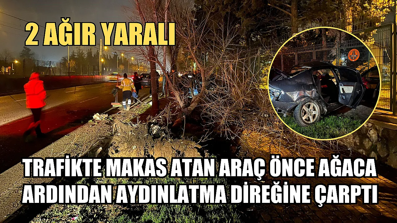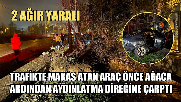 Trafikte makas atan araç önce ağaca, ardından aydınlatma direğine çarptı: 2 ağır yaralı