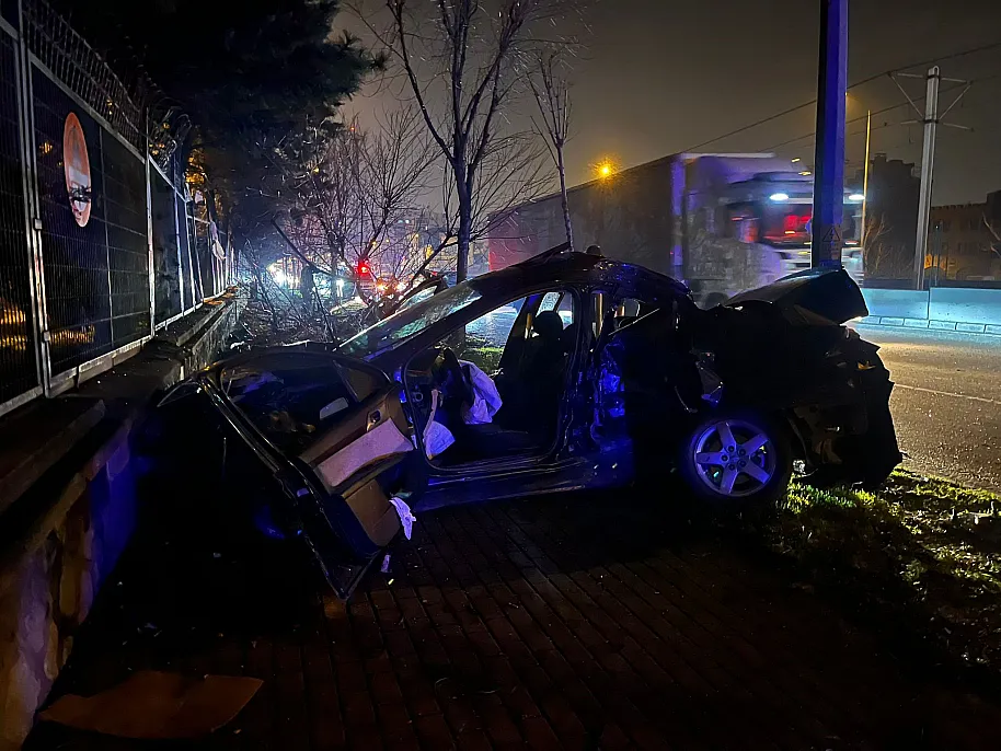 İddiaya göre trafikte makas atarak ilerleyen otomobil kontrolden çıkarak önce yol kenarında bulunan ağaca, daha sonra ise aydınlatma direğine çarptı. Yaşanan kazada sürücü ve yolcu ağır yaralandı.