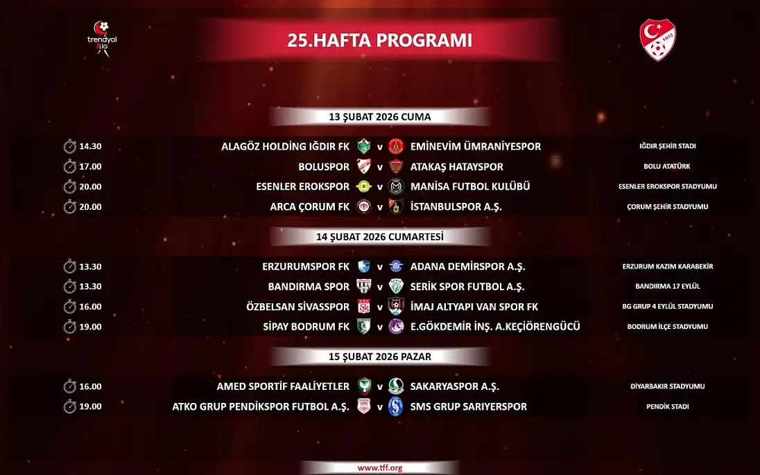 Trendyol 1. Lig'de 23-27. haftalar arasında oynanacak müsabakaların programı açıklandı.