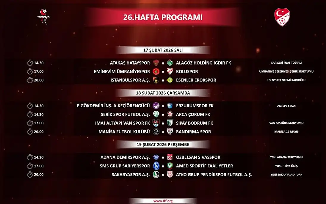 Trendyol 1. Lig'de 23-27. haftalar arasında oynanacak müsabakaların programı açıklandı.