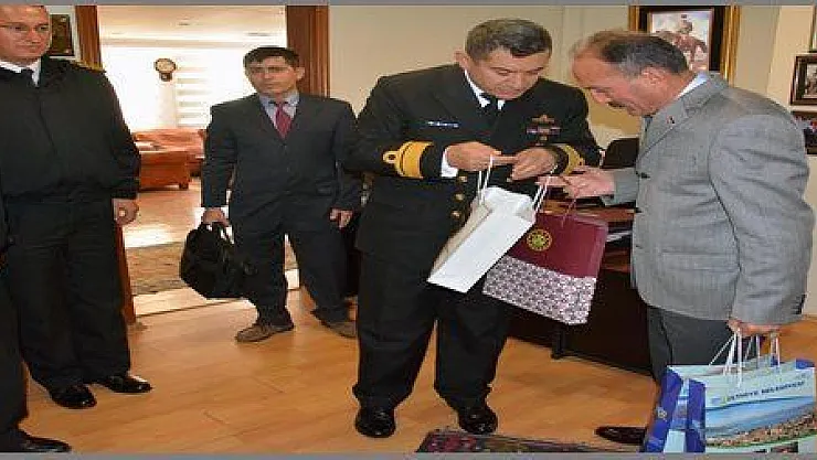 Marmaris Aksaz Deniz Üs Komutanı Tuğamiral Namık Alper, Fethiye Belediye Başkanı Behçet Saatcı'yı ziyaret etti.
