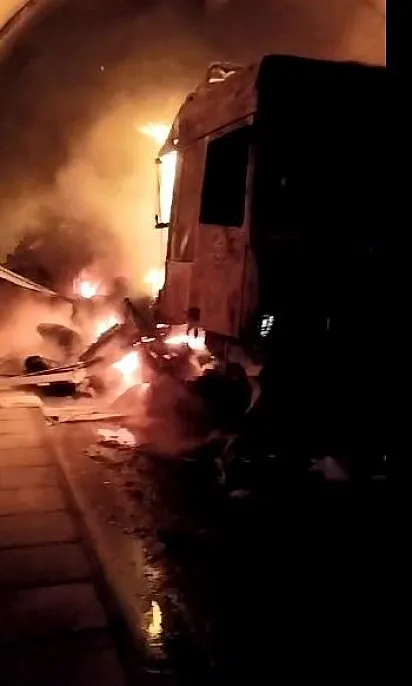 Tünel içinde Gürcistan plakalı bir tır yandı: 5 yaralı
