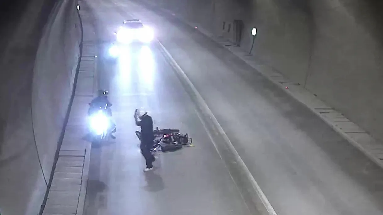 Tünelde seyir halindeyken kontrolünü kaybettiği motosikletten düşen genç sürücü metrelerce sürüklendi.