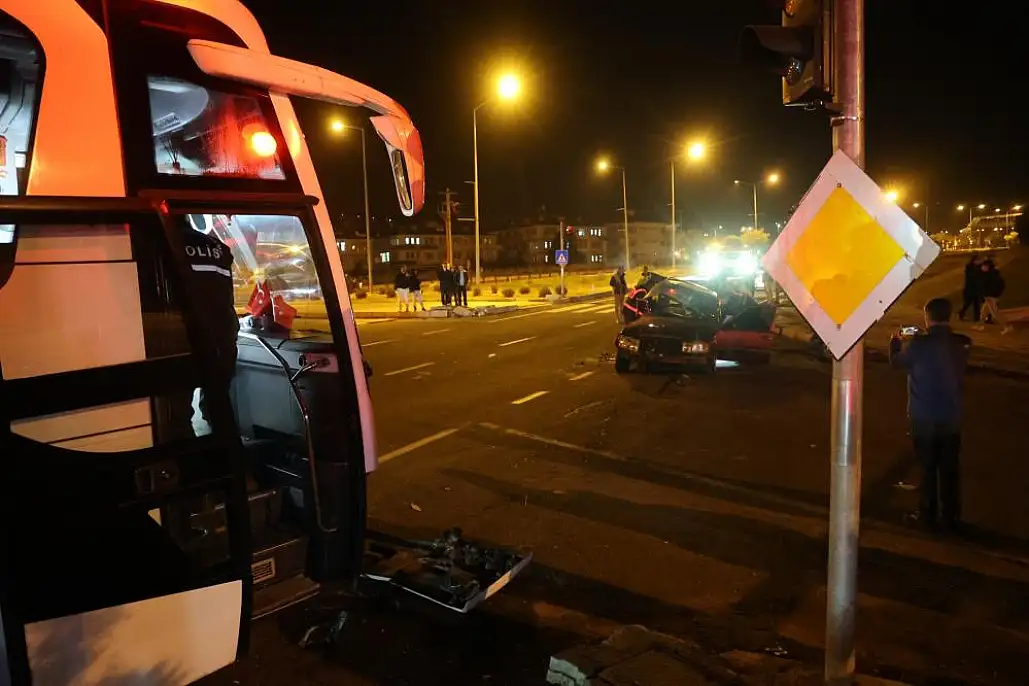 Turist Otobüsü ile Otomobil Çarpıştı: 2 Ölü, 3 Yaralı