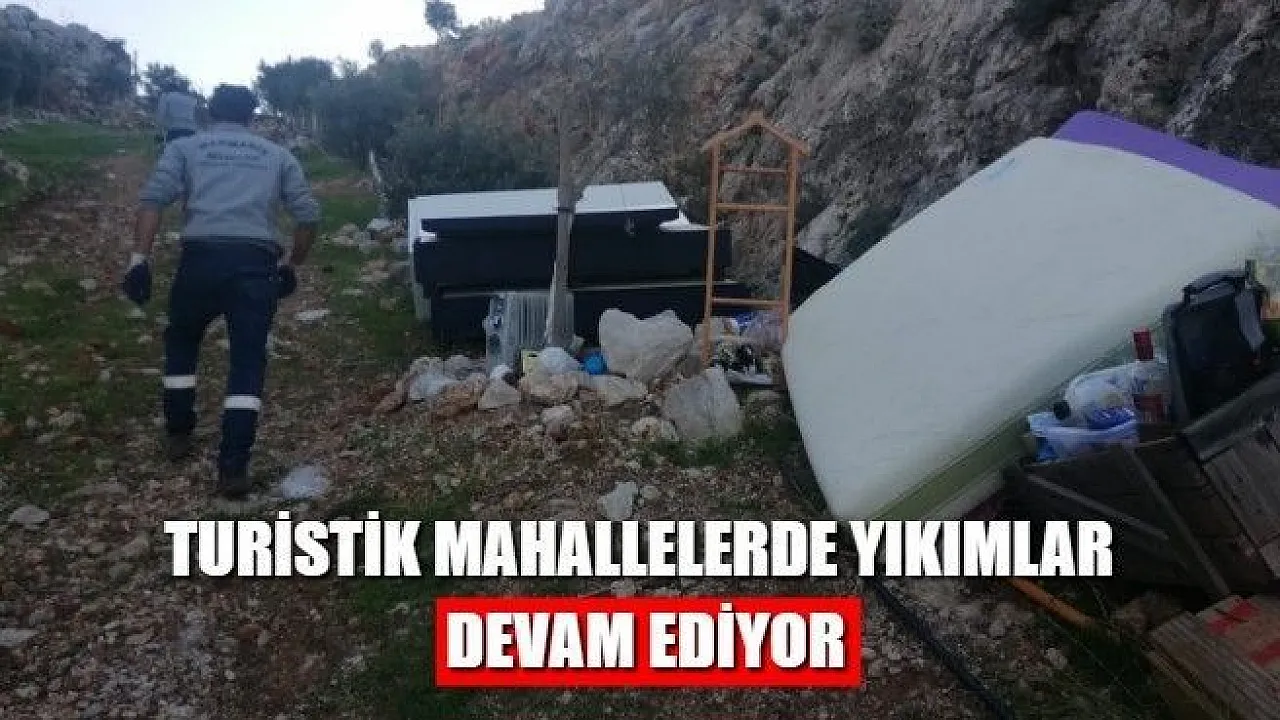 Muğla'nın Marmaris ilçesinde ve ilçeye bağlı turistik mahallelerde imara aykırı olduğu tespit edilen binaların yıkımları devam ediyor.