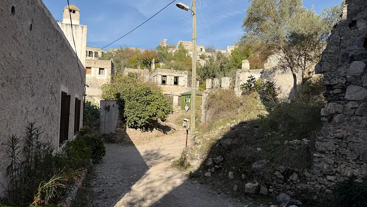 Fethiye'de tarihi 'hayalet köy' olarak bilinen Kayaköy'de yabancı turist topluluğu gezintiye çıkarak tarih hakkında bilgiler alıyor.