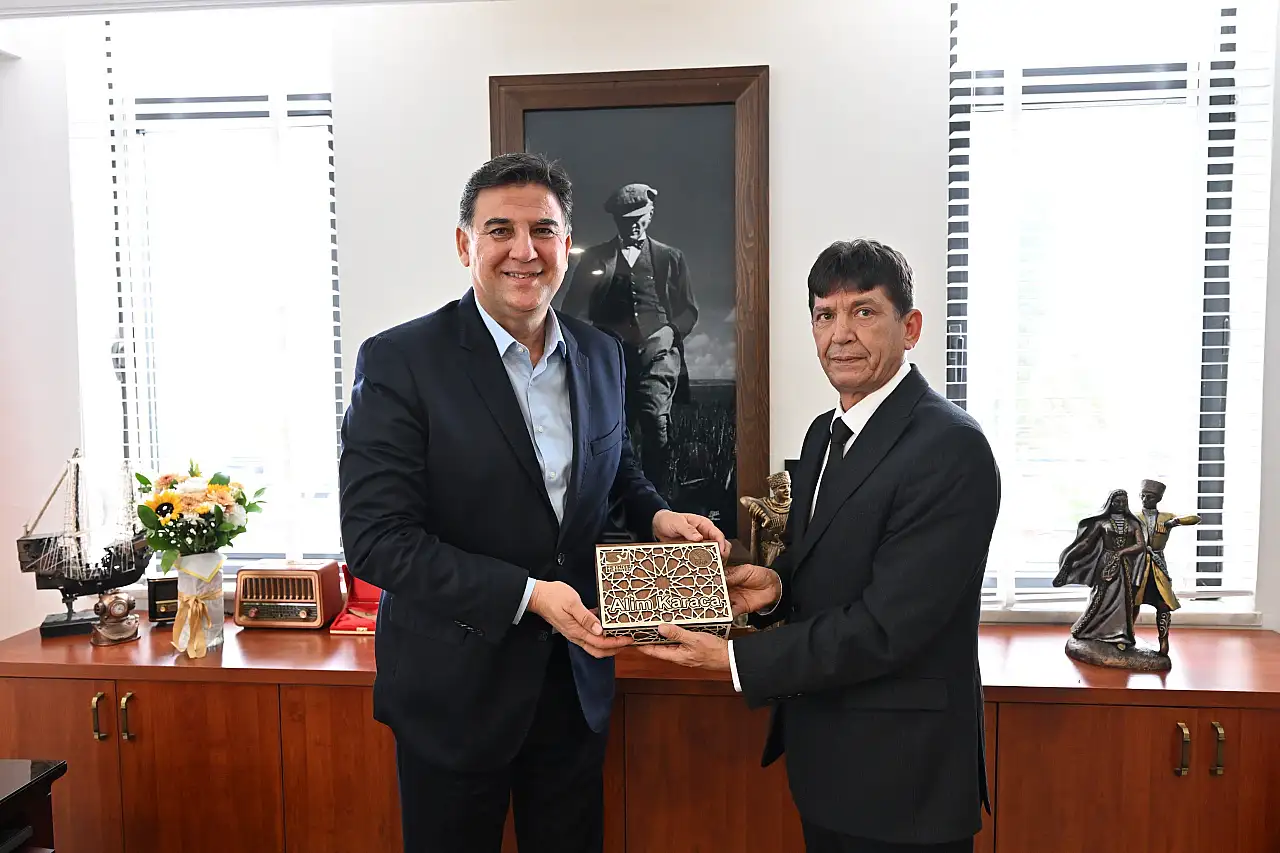 Ziyaret kapsamında Türk Sağlık-Sen Sendika Başkanı Durmuş Aydın, Başkan Karaca’ya günün anısına bir hediye takdim etti. Görüşmede sendikanın çalışmaları, kamu çalışanlarının beklentileri ve yerel yönetimlerle işbirliği konuları ele alındı.