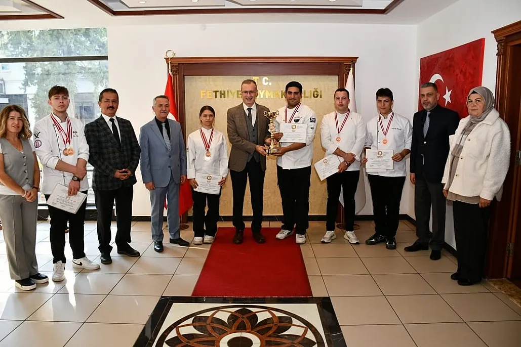 Uluslararası Gastro Antalya Gastronomi Yarışmasında 'En İyi Lise' kategorisinde Türkiye 1.'liği elde eden Şehit Yüzbaşı Özgür Özekin Mesleki ve Teknik Anadolu Lisesi'nin öğrenci ve öğretmenleri, Fethiye Kaymakamı İsmail Hakkı Ertaş'ı ziyaret etti.