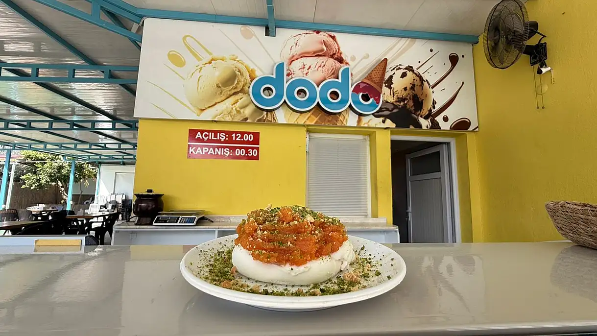 Muğla'nın Seydikemer ilçesinde faaliyet gösteren Dodo Dondurma, kendi özel üretimi olan 'Patdo' tatlısıyla dikkat çekiyor. İşletme sahibi Emre Demir, tatlının Türkiye'de ilk ve tek olduğunu vurguladı.