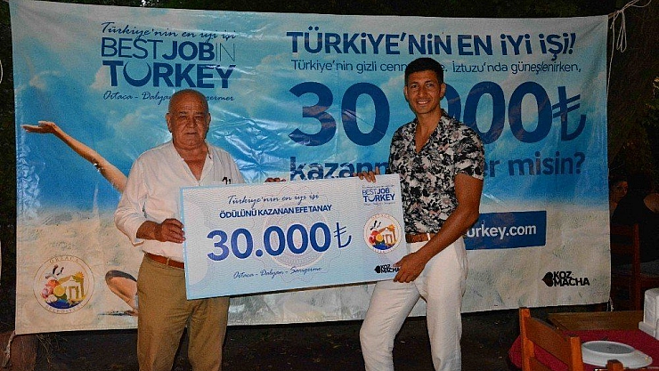 Kozmacha Reklam Ajansının ilk ayağını Ortaca Belediyesi iş birliği ile Ortaca, Dalyan ve Sarıgerme destinasyonunda gerçekleştirdiği "Türkiye’nin En İyi İşi” projesi kapsamında bölgenin tanıtım yüzü olan Efe Tanay, 1 ay boyunca hiç harcama yapmadan tatil yaptı. Tanay, Günlüklü Restoranda düzenlenen törenle Ortaca Belediye Başkanı Hasan Karaçelik ve Kozmacha Reklam Ajansı ortağı Fatih Akaslan’dan 30 bin liralık çekini aldı. 1-31 Ağustos tarihleri arasında hiçbir ücret ödemeden Ortaca, Dalyan ve Sarıgerme destinasyonunda çeşitli aktivitelere katılan ve bölgeyi gezen Tanay, deneyimlerini www.bestjobinturkey.com adresindeki blog sayfasında ve projenin Instagram, Facebook ve Youtube gibi sosyal medya hesaplarında paylaştı.