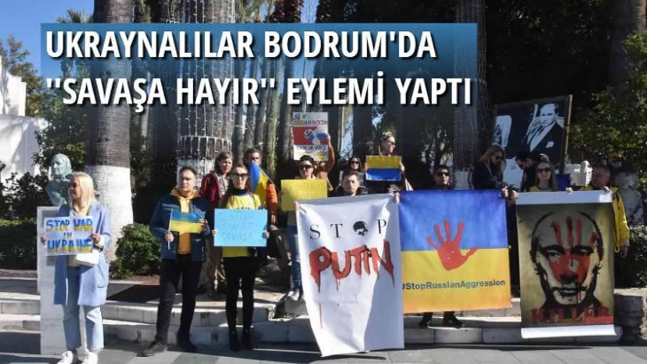 Rusya’nın Ukrayna’ya başlattığı askeri harekat Bodrum’daki Ukraynalılar tarafından protesto edildi. Bodrum Belediye Meydanı’nda Ukrayna bayrakları ve üzerinde İngilizce “Putin’i durdur, savaşı durdur” yazılı pankartla gelen eylemciler, “Savaşa hayır”, “Ukrayna’daki savaşı durdur”, “Putin’i durdur” yazılı dövizler taşıdı. Altında “Katil” yazan Putin’in fotoğrafının açıldığı eylemde “Katil Putin” sloganları atıldı.