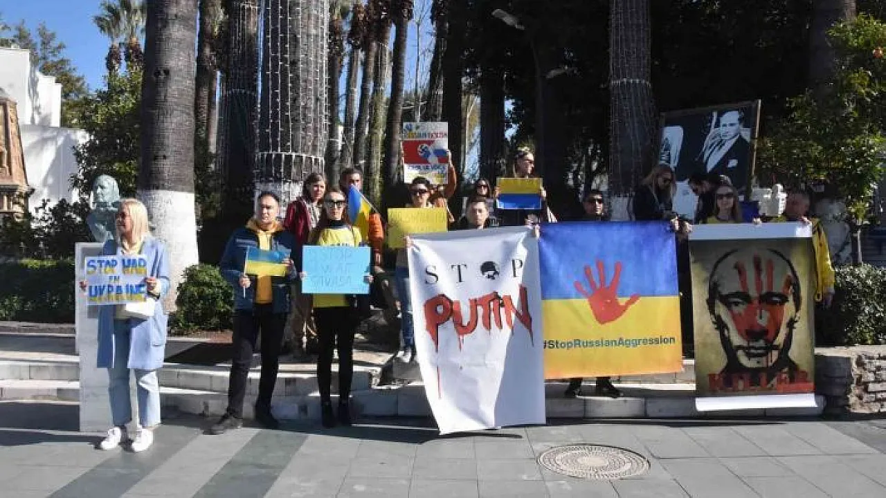 Muğla'nın Bodrum ilçesinde yaşayan Ukraynalılar, Rusya'nın Ukrayna'ya düzenlediği saldırıyı protesto etti. Eylemde 'Katil Putin' sloganları atıldı.