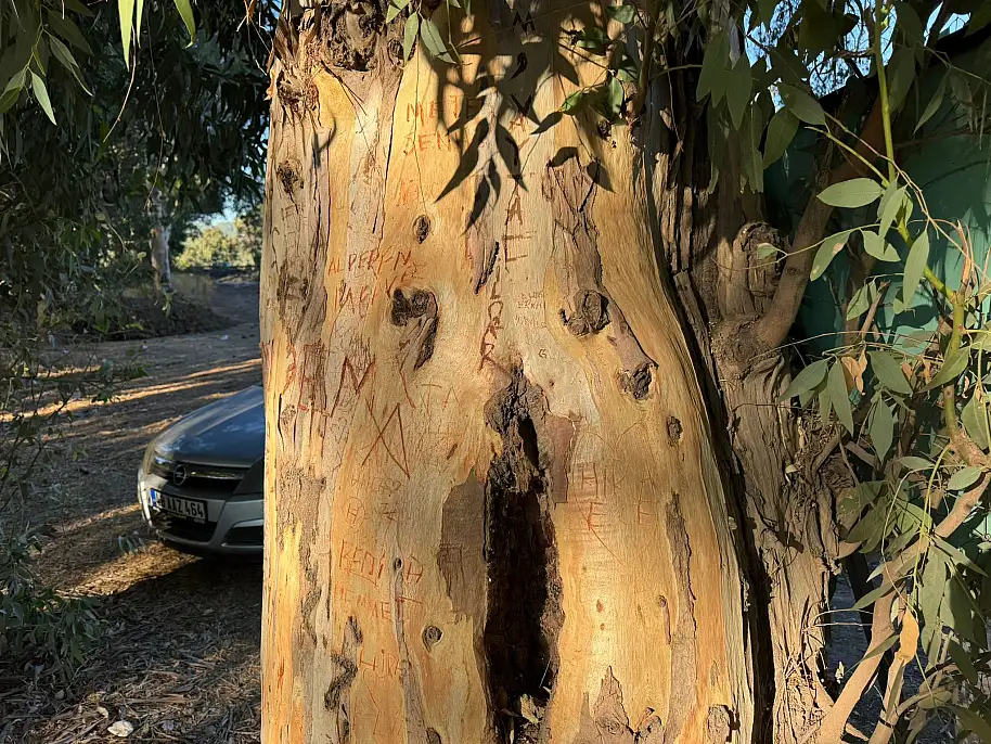 Muğla'nın Ula ilçesi Akçapınar Mahallesi'ndeki Ağaçlı Yol'daki (Aşıklar Yolu) ağaçlara yazı yazanlar muhtarlık tarafından asılan tabela ile uyarıldı.