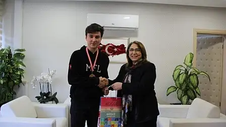 TÜBİTAK Ulusal Bilim Olimpiyatlarında bilgisayar dalında bronz madalya almaya hak kazanan, Muğla 75. Yıl Fen Lisesi 12’nci sınıf öğrencisi Deniz Özaydın, İl Milli Eğitim Müdürü Pervin Töre’yi makamında ziyaret etti.